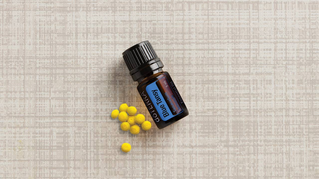 Blue Tansy, zwany także marokańskim wrotyczem, to corocznie kwitnąca na żółto roślina śródziemnomorska, znaleziona w północnym Maroku. Chamazulen - składnik chemiczny Blue Tansy, zapewnia charakterystyczny kolor indygo i jest znany ze swoich kojących właściwości skóry. Jednocześnie główny składnik chemiczny, sabinen, pomaga zmniejszyć widoczność przebarwień. Idealnie nadaje się do wmasowywania w skórę frakcjonowanym olejem kokosowym lub balsamem po długim dniu pracy lub intensywnych ćwiczeń, aby wspomóc ciało w naturalnym procesie regeneracji.