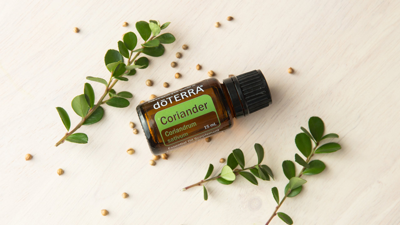 Coriander, czyli Kolendra to jednoroczne zioło, które dorasta do trzech stóp i jest bardzo aromatyczne. Nasiona kolendry są używane od wieków wewnętrznie. Kolendra ma wysoką zawartość linaloolu, która pomaga skórze zachować zdrową cerę. Kolendra może być kojąca po wmasowaniu w ciało. Słodki, ziołowy aromat jest relaksujący i podnoszący na duchu, dzięki czemu jest dobrym olejkiem rotacyjnym do stosowania w mieszankach dla uzyskania świeżej, organicznej nuty.