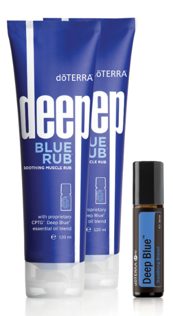 Zestaw Deep Blue to zbiór popularnej linii produktów Deep Blue firmy doTERRA. Od momentu powstania Deep Blue mieszanka i jej produkty z tej serii są ulubionymi produktami klientów doTERRA. Mieszankę Deep Blue mieszanki Wintergreen, kamfory, mięty pieprzowej, niebieskiej wrotyczu pospolitego, niebieskiego rumianku, kacanki i liśći osmantusa można nakładać miejscowo, aby zapewnić kojące i chłodzące uczucie, które jest idealne do kojącego masażu. Jest dobrze stosowany przez sportowców i entuzjastów ćwiczeń, aby uspokoić mięśnie i zrelaksować ciało po intensywnej aktywności. Po długich godzinach korzystania z komputera spróbuj pocierać Deep Blue na palcach, nadgarstkach, ramionach i szyi.