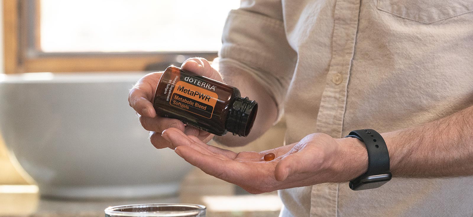 Te wygodne i łatwe w użyciu kapsułki żelowe na bazie tapioki zawierające naszą prawnie zastrzeżoną mieszankę olejków eterycznych MetaPWR™ to owoc pracy badaczy klinicznych dōTERRA. Kapsułki żelowe, w skład których wchodzą olejki eteryczne z grejpfruta, cytryny, mięty pieprzowej, imbiru i cynamonu, zostały stworzone, by pomóc w zoptymalizowaniu procesów trawienia i zapewnieniu wewnętrznej stabilności, a tym samym w osiągnięciu szczytowej wydajności fizycznej.